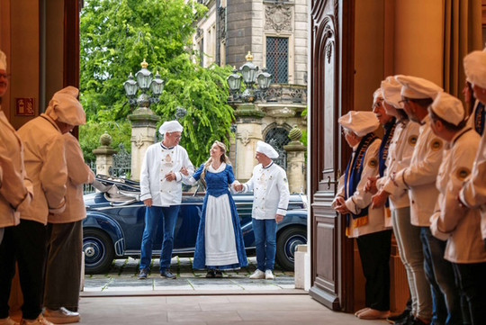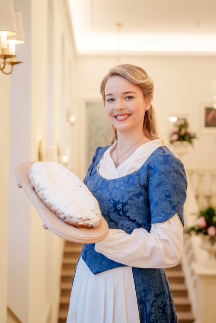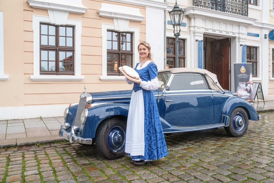 der Dresdner Christstollen steht für Handwerk, Geschichte und ein Stück gelebte Tradition – und genau diese Werte weiß das neue Dresdner Stollenmädchen mit ihrem ganz eigenen Stil zu verbinden. Johanna Worm liebt die 50er Jahre mit ihrer Musik, Mode und Lebensfreude. Dass sie bei ihrer Vorstellung am Montag in einem Mercedes-Benz Oldtimer aus dieser Ära zu Saxofon-Klängen vor dem Hotel Taschenbergpalais Kempinski vorfuhr, war daher mehr als ein symbolischer Auftritt: Er spiegelte die Verbindung von Tradition und jugendlicher Begeisterung wider, die sie nun als Botschafterin des Dresdner Stollens übermittelt.