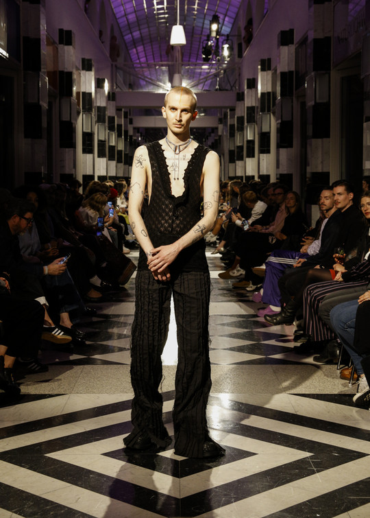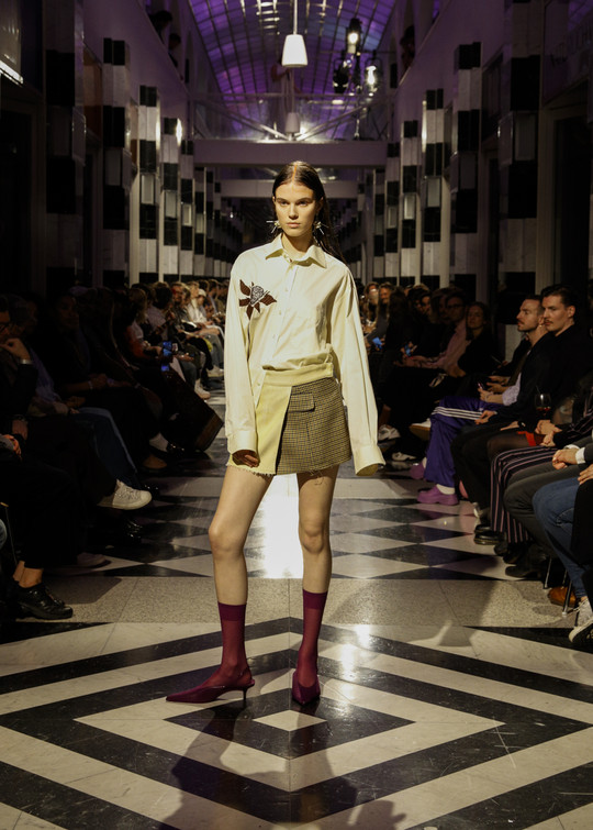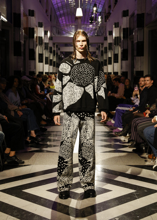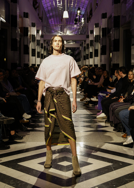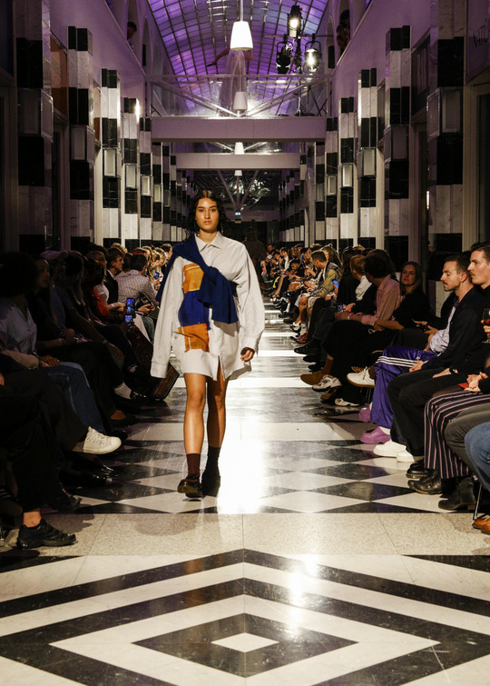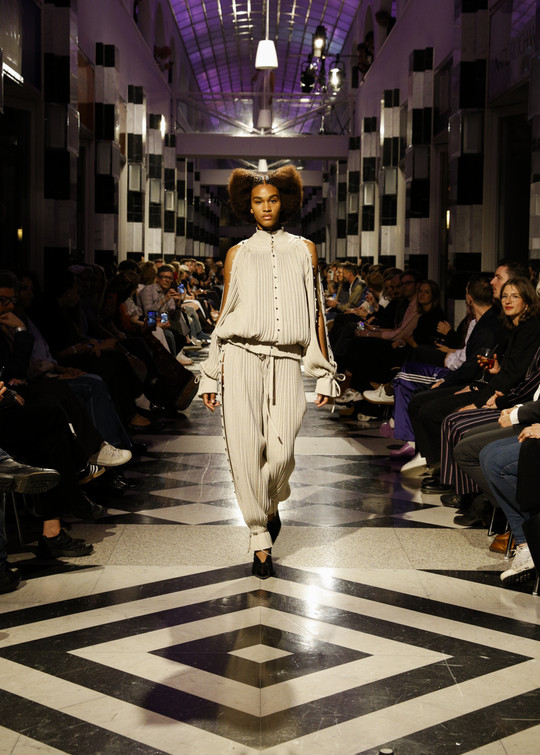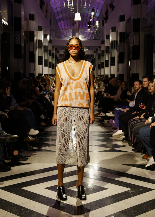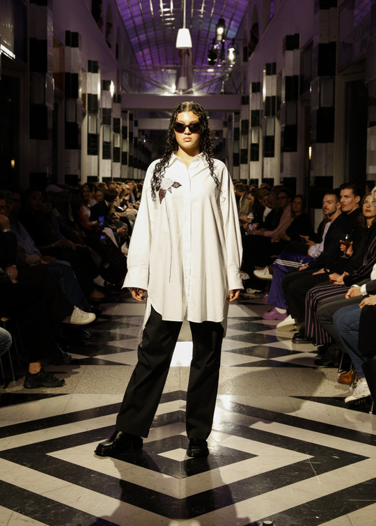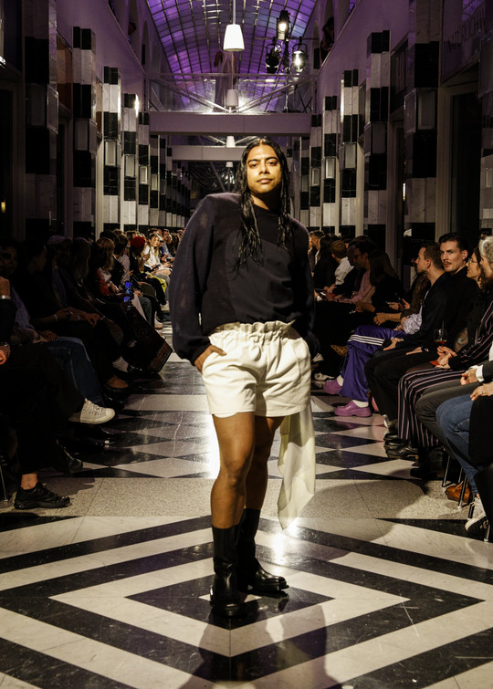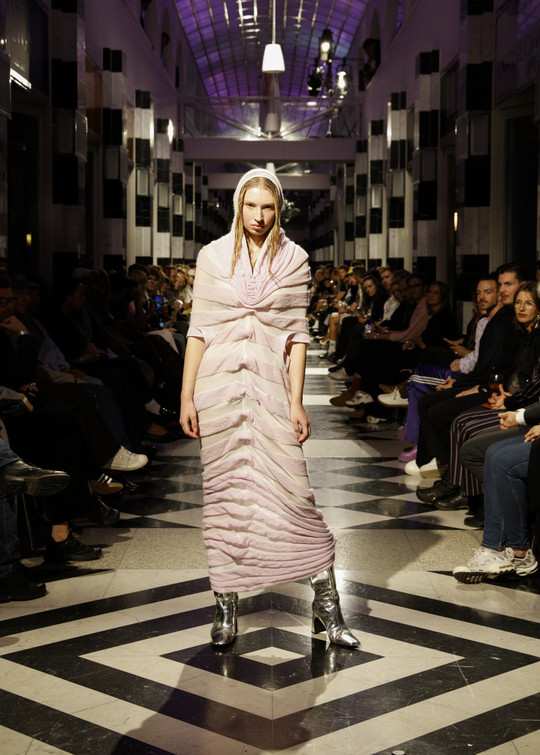 In ihrer oHneH Microfactory in Billbrook entwickelt Mone nicht nur für andere Designer*innen, sondern arbeitet auch an ihrem eigenen Label ohneh.hh. Eine echte Besonderheit: Viele Stoffe und Textilien der FABRIC-Kollektion stammen direkt aus ihrer Hand – Mone hat sie in Hamburg selbst hergestellt, sowohl für ihre eigenen Entwürfe als auch für die Arbeiten der anderen Designer*innen. Materialien made in Hamburg. Für ihre Styles der Kollektion hat sie außerdem an Strukturen, Modularität und wandelbaren Silhouetten gearbeitet.