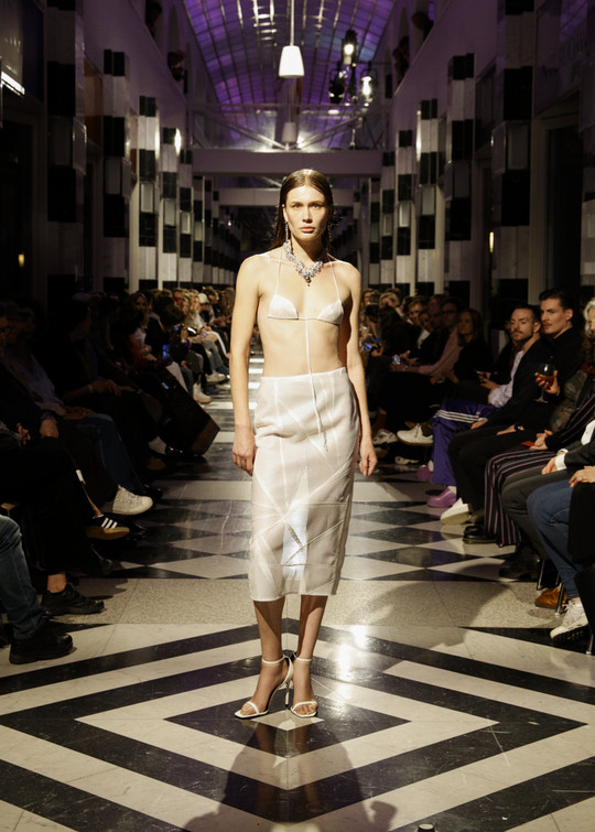 Masoumeh übersetzt ihre textile Familientradition aus dem Iran in ein modernes, interkulturelles Designverständnis. Mit Chasho gestaltet sie Mode als wandelbares Medium – zwischen Kunst, Handwerk und Kultur. Ihre Entwürfe für die FABRIC-Kollektion sind von Licht, Bewegung und Gegensätzen geprägt.