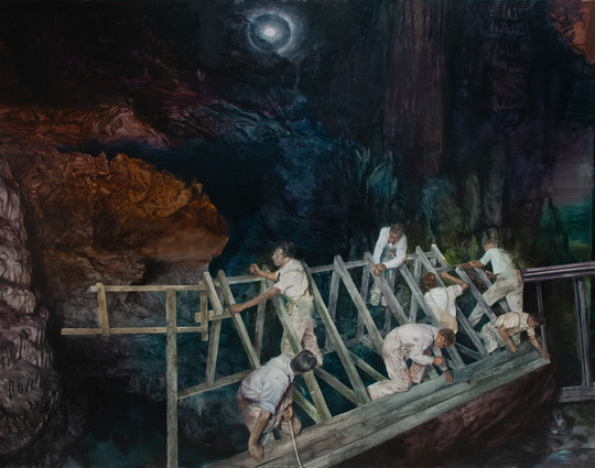 François Jacob, Batisseurs, 2024, Öl auf Leinwand, Kunstmuseum Wolfsburg