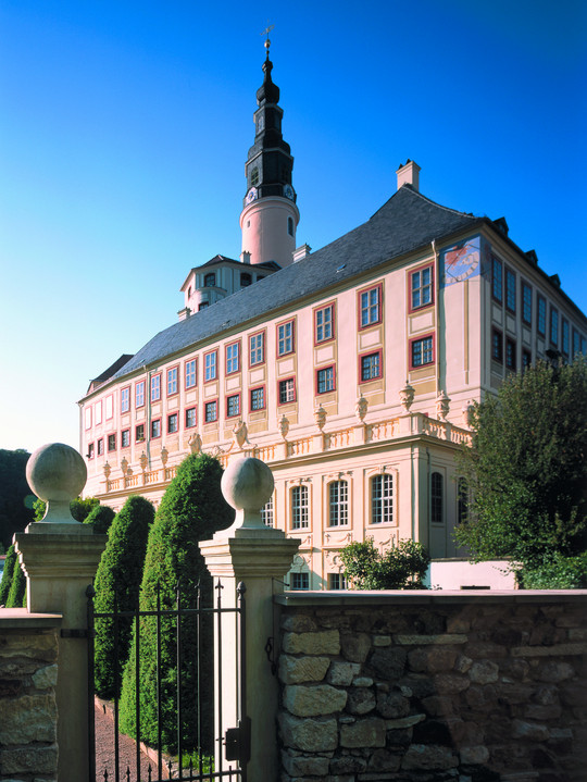 Ca. 22 km von Dresden entfernt. Paare, die auf Schloss Weesenstein den Bund der Ehe im Rahmen einer kirchlichen Trauung besiegeln wollen, wenden sich bitte an den Pfarrer ihrer Heimatgemeinde bzw. an das für Weesenstein zuständige Pfarramt Burkhardswalde 035027/5325. Mit der Evangelisch-lutherischen Schlosskapelle, gebaut vom George-Bähr-Schüler Johann Georg Schmidt, bietet das Schloss für diesen Anlass ein wundervolles barockes Ambiente. Grundmiete bis 300 Euro.