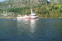 Weiter ging es bis Grong. Langsam konnte man die Schönheit Norwegens durch die beschlagenen Scheiben erkennen. Die Straße führte jetzt oft an Gewässern entlang, welche noch reizvoller durch die vielen Wasserfälle wirkten. Von Grong ging es über die R 17 eine um Fjorde geschlungene, malerische Straße bis Gutvik. Hier legt alle 90 Minuten eine kleine Fähre im Pendelverkehr zur Insel Leka ab. Diese Fährverbindungen sind dort so selbstverständlich wie bei uns Bus und Straßenbahn.