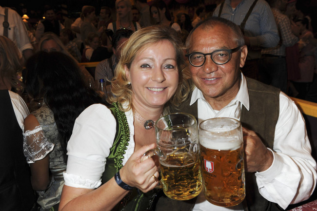 Die Laureus Sport for Good Stiftung hatte die VIPs zum Abschluss eines zweitägigen Events inklusive "Laureus Kids Day", Golfturnier und Charity- Gala auf die Wiesn geladen. Im "Hippodrom" von Sepp Krätz stießen die Stars aus Sport, Wirtschaft und Showgeschäft mit einer kühlen Maß auf die Spendensumme des Vorabends an: stolze 805 850 Euro waren bei der "Laureus Sport for Good Night" gesammelt worden. Ein cooles Doppel waren unter anderem Boris und Lilly Becker und Sohn Noah Becker und seine vier Jahre ältere Freundin, die Berliner Sängerin Lary. Becker jr. trug eine schwarze Lederjacke über der Lederhosen, sie lässig ein Käppi zum Dirndl. Für Christa Kinshofer (in "Miesbacher Tracht") und Ehemann Dr. Erich Rembeck war's wie für die Beckers ein Wiesn-Ausflug im Patchwork-Style: sie kamen mit ihrer Tochter Stefanie sowie seine beiden Töchter Luise und Laura. "Zusammen haben wir fünf Kinder, aber nur drei sind heute mit dabei", erzählte sie. Ex-Boxer und Laureus-Botschafter Axel Schulz (mit Frau Patricia) trank seine allererste Wiesn-Maß: "Ich bin zum ersten Mal auf der Wiesn. Der absolute Knaller. So schön hätte ich es mir gar nicht vorgestellt", so Schulz, der später auf der Bank tanzte: "Bei der sensationellen Spendensumme von gestern darf heute ruhig gefeiert werden." Ruhiger ließen es Brötchenkönig Heiner Kamps und seine Neu-Ehefrau Ella (feierten Ende August Traumhochzeit auf Ibiza) angehen: die beiden schauten auf einen Sprung bei Becker und Co. vorbei. Schliesslich freuen sich die beiden auf Zwillinge. Ihren Babybauch hatte sie geschickt verpackt: "Ich trage eine Herren-Lederhose", erzählte sie schmunzelnd. "Das Wichtigste an einem Wiesn-Outfit? Dass es passt und man sich darin wohlfühlt", so Radio-Moderatorin Verena Kerth. "Das habe ich festgestellt nachdem mir gestern der erste Reißverschluss eines Dirndls gerissen ist. Ein zu enges Dirndl ist wirklich kein Spaß." Sie führte an diesem Abend ein Lola Paltinger-Modell aus: "Mein Wohnzimmer habe ich zur Wiesn in ein Dirndlankleidezimmer umfunktioniert. Dort hängen derzeit um die 20 Dirndl." Außerdem dabei: TV-Moderatorin Sabine Christiansen (stellvertretende Vorsitzende der Laureus Sport for Good Stiftung Deutschland; mit Mann Norbert Medus), die am Vorabend ihren 56. Geburtstag gefeiert hatte, Felix Magath, die Laureus-Botschafter Verena Bentele und Michael Teuber, Sport-Manager Peter Olsson, RTLModerator Wolfram Kons, der die Gala am Vorabend moderiert hatte, Ski-Legende Franz Klammer (Mitglied der Laureus Academy), Robert Lübenoff ("lübmedia"), Laureus Botschafter und Hockey-Legende Stefan Blöcher, Henrik Ekdahl (Brand Manager IWC Northern Europe; IWC ist wie auch Mercedes-Benz Global Partner von Laureus) und viele andere. Andrea Vodermayr