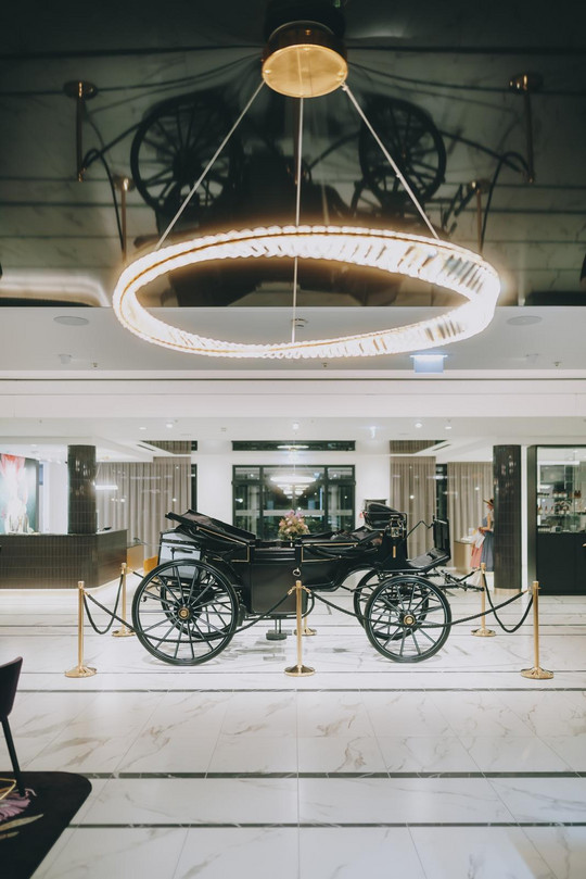 Auch wenn sich der Kitsch der „Sissi"-Filme von Ernst Marischka sonst im Hotel nicht finden lässt, steht in der Hotelhalle die imposante originale Film-Kutsche und in der Hallen-Bibliothek laden Bücher über die Kaiserin zum Schmökern ein. Bis auf diese kleine Hommage widmet sich das Grand Elisabeth aber dem Bild Elisabeths als moderne, unabhängige und starke Frau, die ihrer Zeit als Trendsetterin in vielen Belangen weit voraus war und bis heute als Ikone verehrt wird.