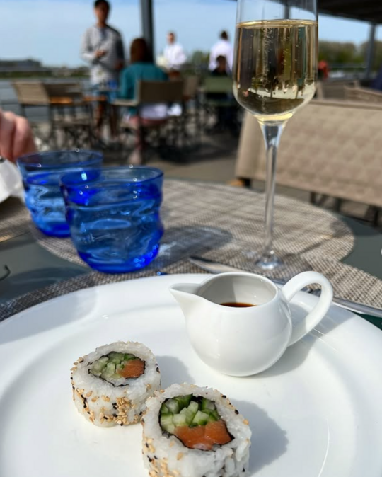 Hochwertige Leckereien auf dem Grill, tolle Vorspeisen inklusive Sushi und natürlich Champagner und gute Weine. Perfekt!
