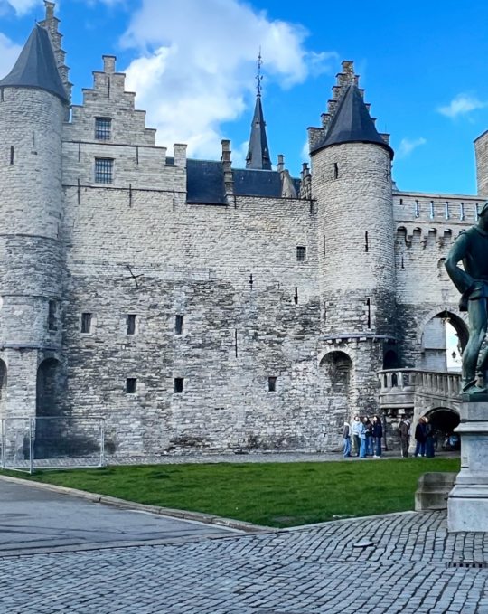 Sonst war die Tour lustiger, führte vorbei am Gro Market, durch die Altstadt mit ihrem neu renovierten Rathaus, den Zunfthäusern , der Statue des Römers Silvius Brabo und der Vlaeykensgang-Gasse, in der im 16. und 17. Jahrhundert Schuster lebten und arbeiteten. Es gab auch einen Stopp an der Liebfrauenkathedrale, der größten gotischen Kirche Belgiens und Standort der größten Rubensgemälde der Welt. Leider hatten wir keine Zeit, die Gemälde zu sehen.