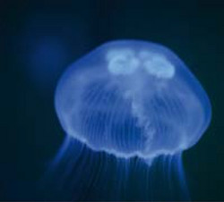Ungefährlich hingegen sind die bis zu tellergroßen, auch in der Ostsee heimischen Ohrenquallen. Die Durchschlagskraft der Nesselpfeile ist für unsere Haut viel zu gering. "Auch ist ihr Giftcocktail nur für kleine Planktonkrebse tödlich", erklären die Experten. Grundsätzlich werden zwei verschiedengestaltige Generationen für ein und dieselbe Art unterschieden: Die am Boden lebende, festsitzende, millimetergroße Polypenform und die freischwimmenden Medusen. Obwohl Quallen fast nur aus Wasser bestehen, besitzen sie ein diffuses Nervensystem zur Koordinierung der Schirm - Kontraktionen. Durch das rhythmische Zusammenziehen des Schirms bewegen sie sich stoßweise vorwärts. Außerdem besitzen sie acht Sinnesgruben, die gleichmäßig am Rand des Schirmes verteilt sind. Mit den dort vorhandenen Sensoren stellen die Medusen fest, was im Wasser oben und unten und ob es hell oder dunkel ist. Sie leben meist nahe der Wasseroberfläche, da sie dort ihre Hauptnahrung, das kleinere Plankton, in großer Menge vorfinden.
