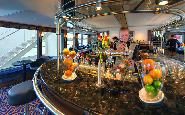 Der Tagesplan ist schon am ersten Tag sehr voll. Gleich müssen wir in den Salon. Pünktlichkeit ist auf einem Schiff Pflicht und so sind wir schon die letzten als wir fünf Minuten vor der Info-Veranstaltung im Salon eintreffen. „Auf einem Schiff gibt es keine Berührungsängste“,erklärt Hoteldirektor Roland Schröck mit österreichischem Akzent und würfelt die einander unbekannten Passagiere auf Bänken und in Sitzgruppen zusammen. Es ist voll und warm. Ausführlich erklären uns die Verantwortlichen die wichtigsten Regeln, Abläufe und Planungen für die nächste Woche. Nach einer Stunde werden die ersten Passagiere unruhig. Zum Glück kann man bei den Kellnern Getränke bestellen. Gleich anschließend erläutert Katharina Kohlschmidt die Ausflugsmöglichkeiten. Wir sind müde von der Anreise und können uns kaum noch konzentrieren. Auch die Kinder hängen durch. Endlich ist es fertig!
