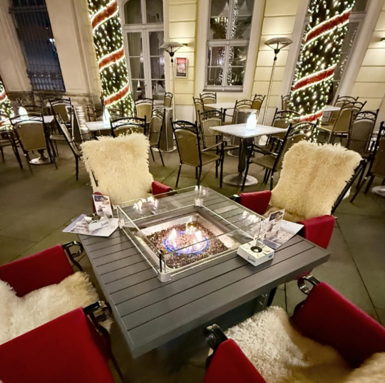 Der Innenhof im Coselpalais ist ein solcher Ort: gemütlich am Feuerchen sitzen mit einer heißen Schokolade oder einem Glühwein, herrlich.