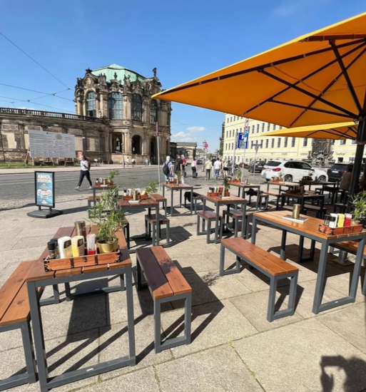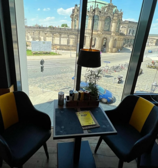Leider ist es im Moment zu kalt für die Terrasse mit direktem Blick auf den Dresdner Zwinger (319 Innen- und 200 Außenplätze).